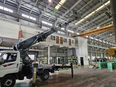 1톤 스카이의 경우, 공장 내부에서는 작업성은 좋지만 천장 높이가 있는 공장에서는 작업 높이가 아쉬운 경우가 많습니다. 특히 공장 조명은 대부분 상부 구조물 쪽에 설치되어 있어, 작업자가 충분한 여유를 두고 작업하기에는 높이가 빠듯할 때가 있습니다.